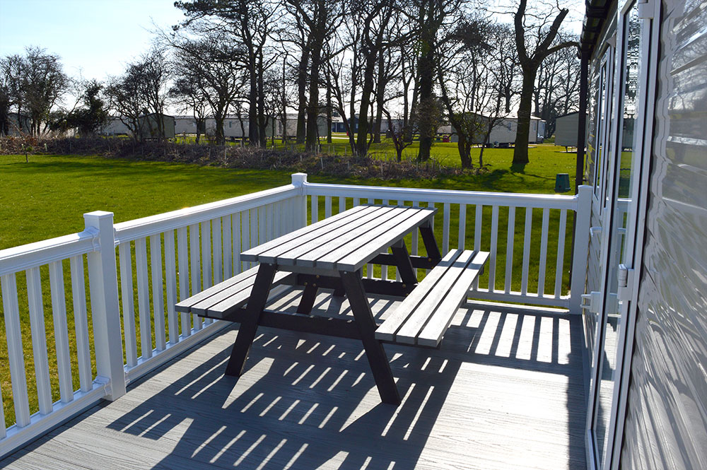 Gold Caravan’s also boast an outdoor decking area, complete with garden furniture, and super fast WIFI.